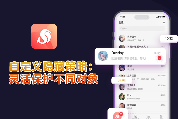 丝瓜聊天提供了多种隐藏方式,满足不同层级的隐私需求: